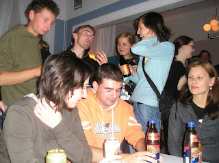 "Fiesta del jueves. A mi izqda Greta, una de mis studen tutors. A mi dcha Ewa, una polaca"